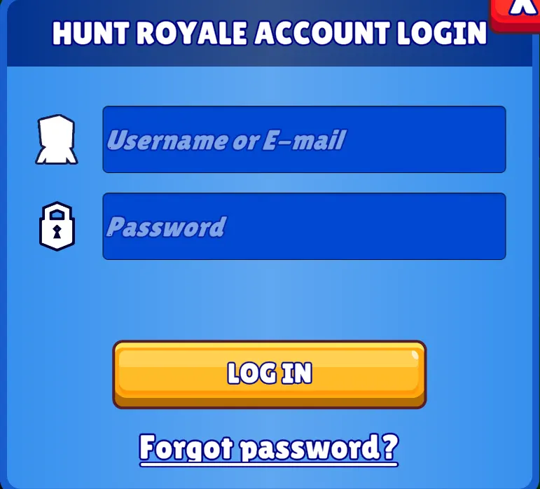 Enter your Hunt Royale game account details (login and password) associated with your game profile in the required text boxes above. This method is compatible with the game on iOS, Android, and all platforms.
